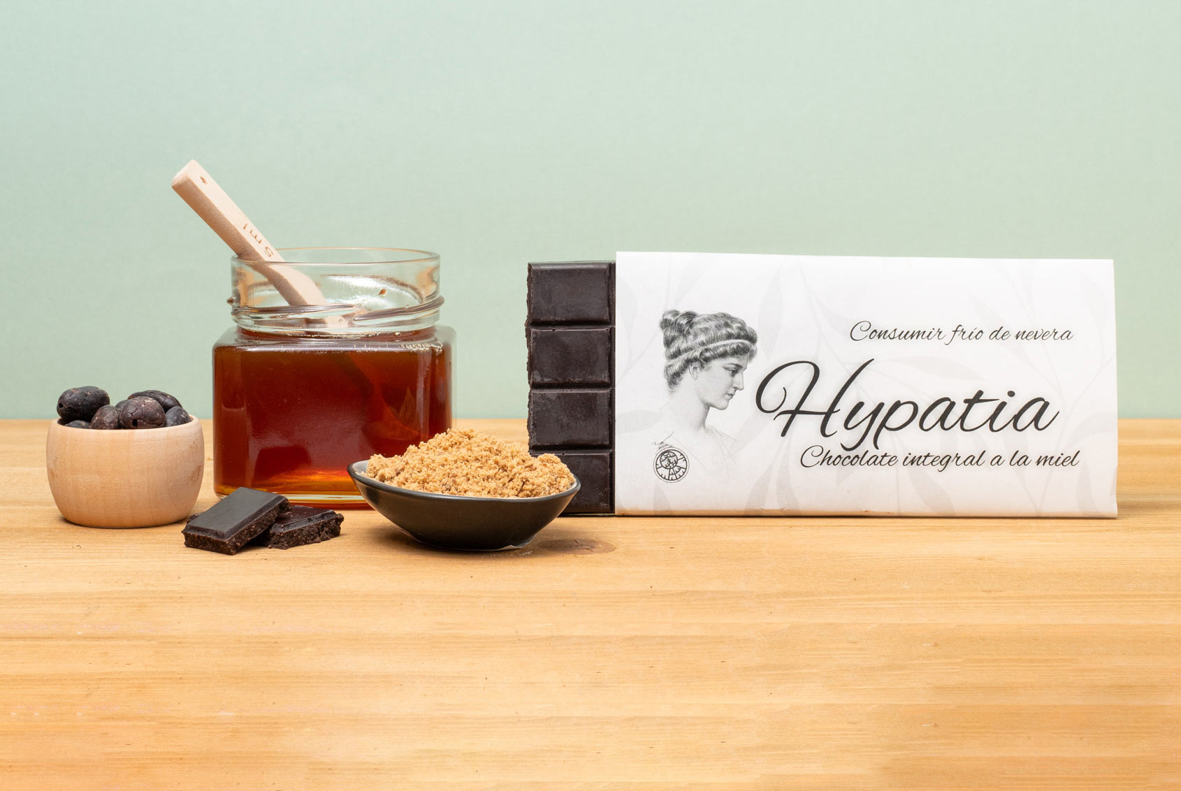 Hypatia is a new Spanish chocolate brand, which produces handcrafted chocolate bars with only 3 ingredients: panela, cocoa and honey. All its ingredients are organic and fair trade.